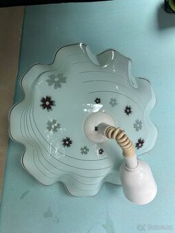 Prodám lustr s navijákem a skleněným stínidlem.