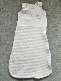 Bavlneny, lehce zatepleny spaci vak, rozepinani na zip a druky, delka cca 80 cm. Velikost 6—12 mesicu, vydrzi dele.