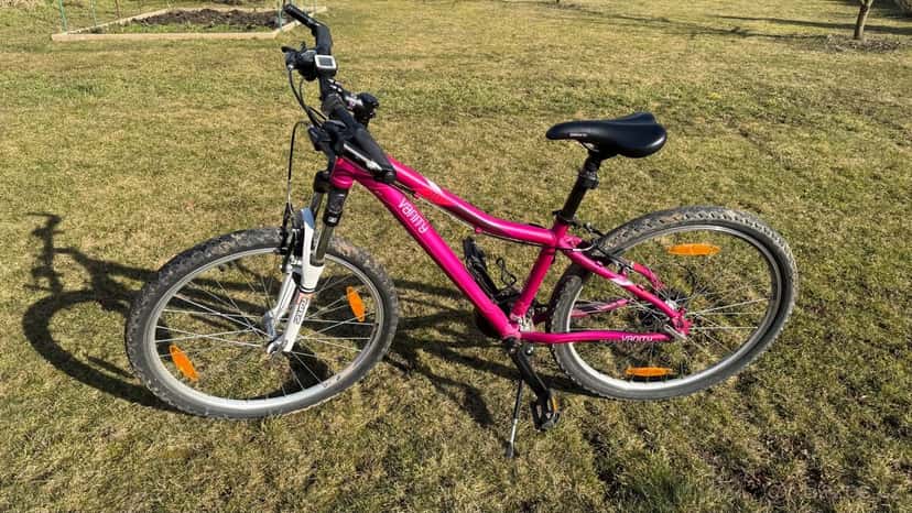 Prodám dívčí, dámské horské kolo Kellys Vanity. Moc neježděné, pěkné. Odpružená vidlice, doplňky. Rám 15”, kola 26”, řazení shimano. Podvodníci nereagujte.