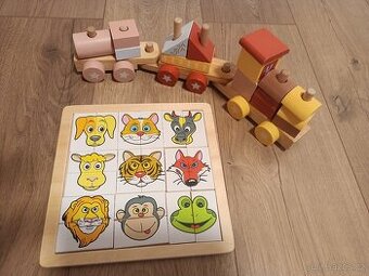 Prodám dřevěný vláček a vkládačku viz foto. Cena je uvedena za vše