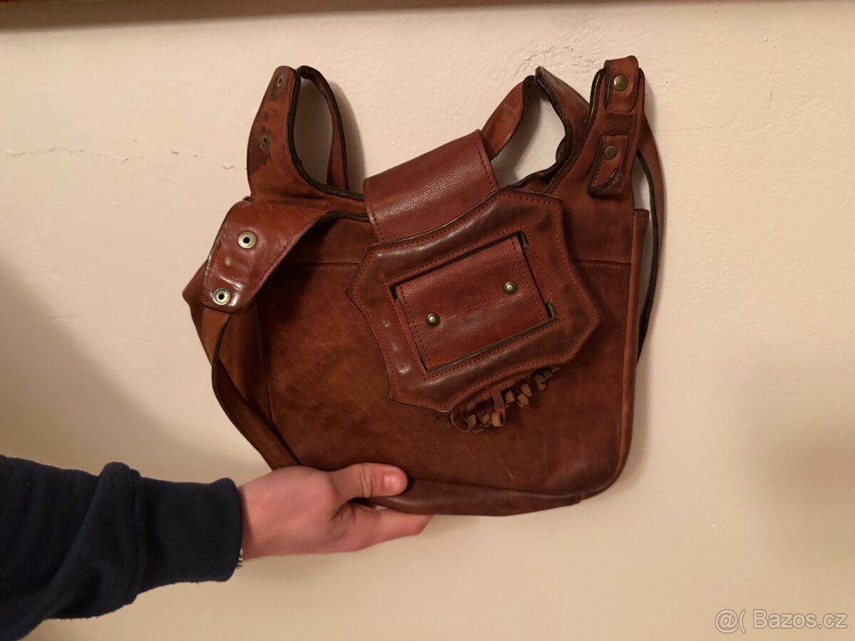 Velká hnědá kožená brašna