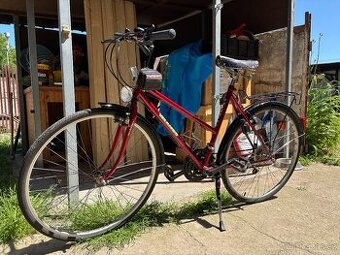 Cena: Dohodou. Retro kolo které stále šlape, bez problémů dává terén i dlouhé cesty. Levá šlapka byla před lety slepovaná, ale je pevná a nikdy nebyl problém. Vepředu je kapsa na věci a retro kovový zvonek. Možné jen osobní vyzvednutí
