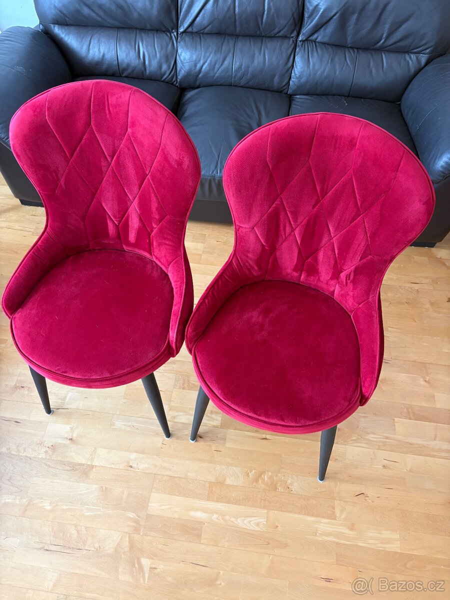 Prodáme dvě málo používané židle. Potah samet, barva vínová. Pohodlné, kvalitní, značka Aton