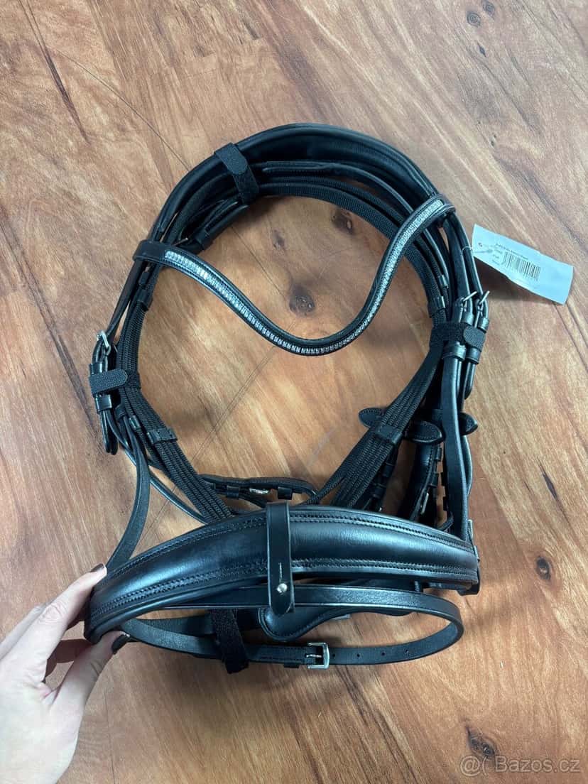 Nabízím uzdečku Kentaur se stříbrnou čelenkou, odepínacím podbradním řemínkem s otěžemi. Velikost full. Nová s visačkou. Cena: 1.750,-