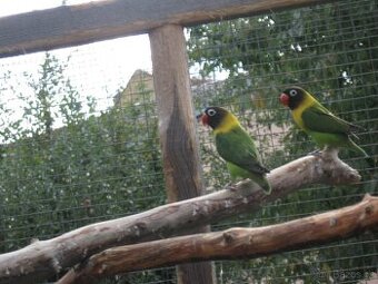 Cena: V textu. Prodám tři samice 100% agapornis škraboškový přírodní zbarvení, rok 025, ihned do chovu. Pevný kroužek bez vady. Cena 500 kč kus, tel 603 581433