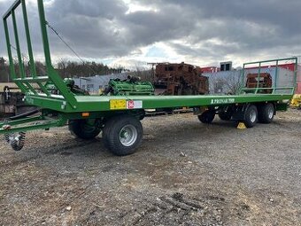 Dobrý den. Nabízíme skladový přepravník balíků Pronar T023, záruka 3 roky. Ceny jsou bez DPH. V ceně zahrnuto - box na nářadí, blatníky na kolech. Konstrukční celková hmotnost: 16000 [kg] Celková hmotnost schválená (dle EU 167/2013): 15000 [kg] Nosnost: 11300 [kg] Provozní hmotnost: 3700 [kg] Ložná plocha: 24 (26,2*) [m2] Délka nákladové plošiny: 9880 (10780*) [mm] Šířka ložné plochy: 2435 [mm] Celkové rozměry (d/š/v): 12000(12900*)/2550/2830 [mm] Výška předního a zadního čela: 1700 [mm] Síla podlahy: 3 [mm] Výška ložné plochy od země: 1130 [mm] Rozchod kol: 1730 [mm] Odpružení náprav: Parabolická pera Pneumatiky: 400/60-15.5 Maximální rychlost: 40 [km/h] Požadavek na výkon traktoru: 83.2/61 [hp/kW]