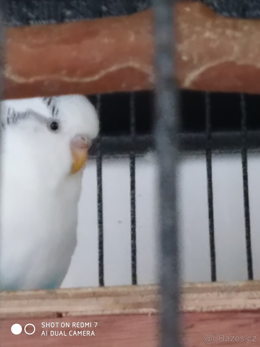 Prodám andulky modrý samec . bílá samička roční do chovu