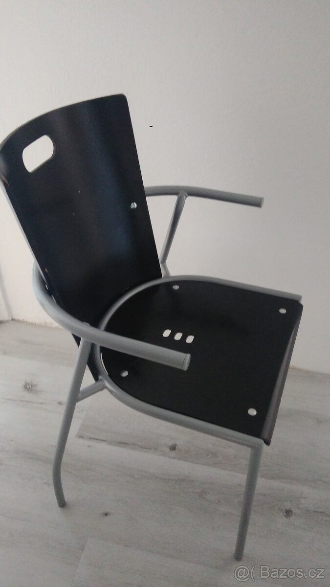 Černá dřevěná židle, kovové područky a nohy