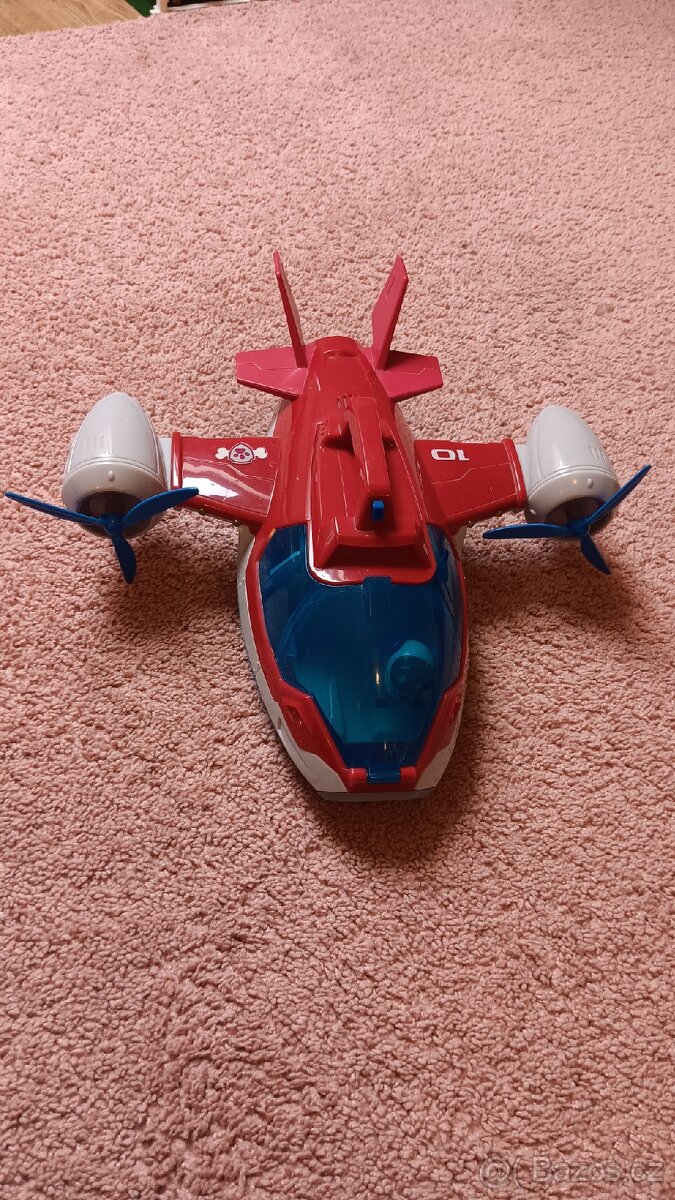 Letadlo a figurka robopes. Svítí a hraje. Bez poškození.