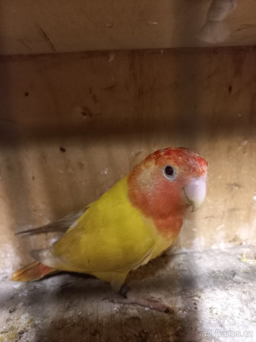 Prodám loňského mladého agapornise růžohrdlého lutino. Asi samce.