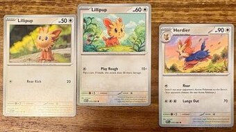 Nabízím hratelnou sadu colorless pokémonů (White Flare, Obsidian Flames): - Lillipup (OBF 170) - Lillipup (WHT 074) - Herdier (WHT 075) Všechny karty ve stavu near mint, nebyly hrané, z balíčku rovnou do alba. Každá zabalena ve sleevu, sada v kartonu a bublinkové obálce. Prosím nevolejte, na sms a email odpovídám. Osobní předání možné na Praze 7 - Letenské náměstí, po předchozí domluvě. Doprava Česká Pošta nebo Zásilkovna (cena není součástí nabídky). K Pokémon TCG nabízím i další inzeráty - prohlédněte a ušetříte nejen na poštovném. Od tří inzerovaných položek sleva 3%, od pěti položek sleva 5%.