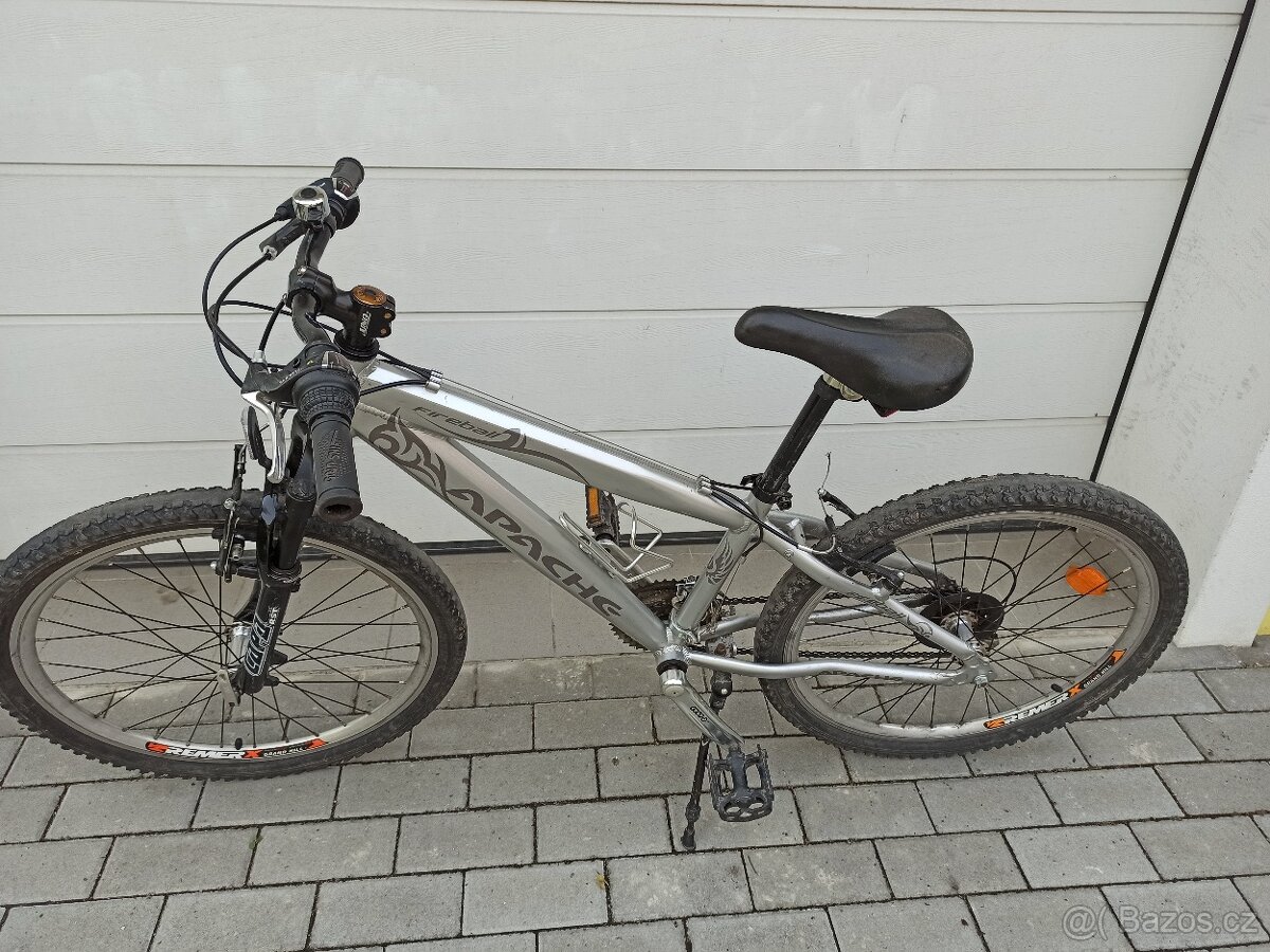 Prodám kvalitní chlapecké kolo APACHE Fireball, vel. 24", v dobrém stavu. Alu rám, odpružené vidlice RST Capa T, alu brzdy, kvalitní komponenty Shimano, řazení 3x7.