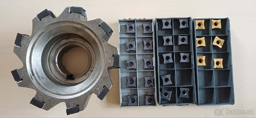 Prodám frézu ISCAR F90LN D100-09-32-L-N11. Průměr upínacího otvoru je 32mm. Fréza je používaná, ale v dobrém stavu. K fréze je 23 nových plátků + 2 částečně použitých. Plátky na fréze jsou použité (9ks).