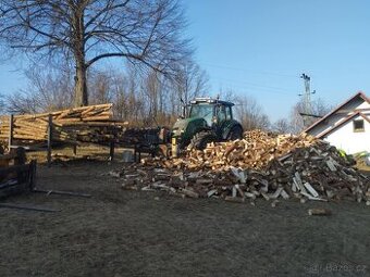 Štípací poloautomat, max délka polene 50 cm, průměr kmene do 40 cm, hydraulicky posuv klínu, pohon z okruhu traktoru, včetně podávacího stolu.
