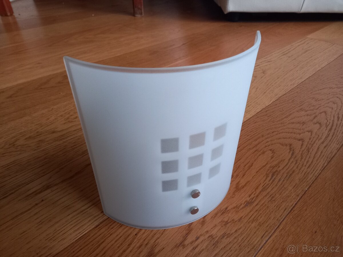 Nástěnné interiérové světlo, nemyté. Výška 19,5 cm, šířka 18 cm.