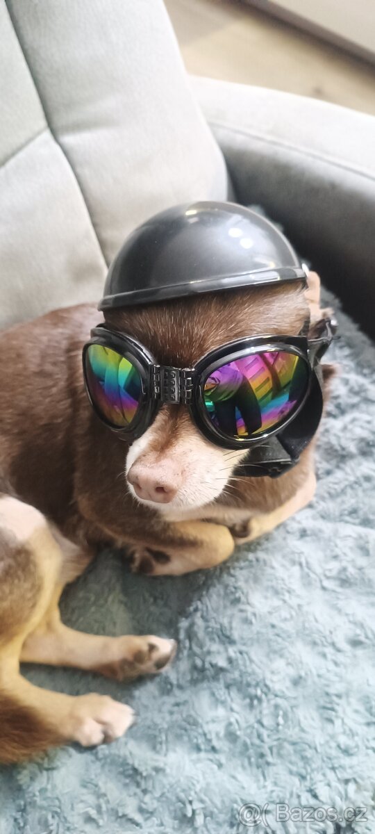 Psí brýle, zapínání na přesky, na spodní části kolem obrouček molitan. Míry viz. foto.