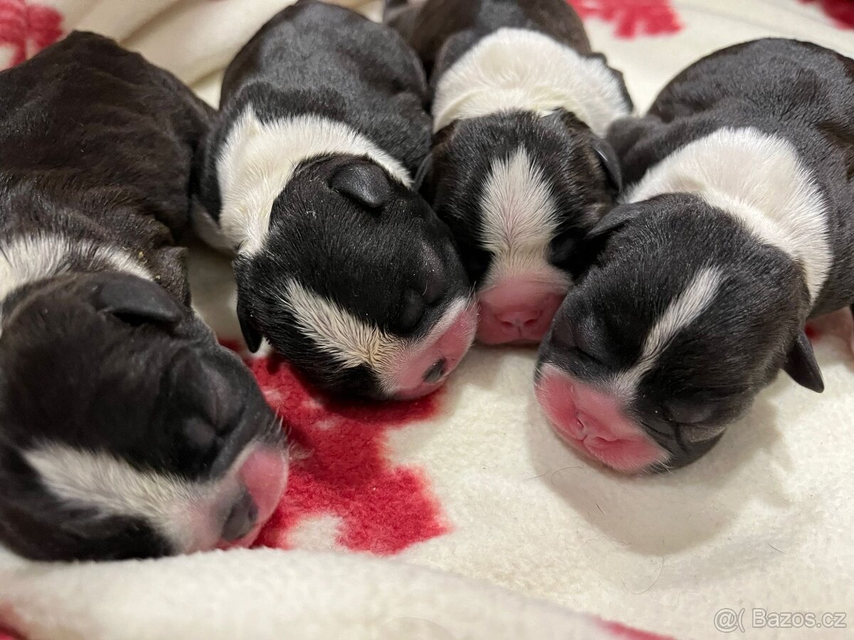 Bostonský teriér 🐾 Prodej štěňátek bostonského teriéra s PP (WFCU) 🐾 Chovatelská stanice Bohemia Rock nabízí k rezervaci štěňátka bostonského teriéra z velmi perspektivního spojení. 🗓 Datum narození: 9. února 2026 🏡 K odběru: začátkem dubna 2026 🐶 Nabízíme 3 kluky ⸻ 🏅 Chovatelská stanice Bohemia Rock je mezinárodně chráněná a registrovaná chovatelská stanice Reg. č.: 202222 Kynologická unie České republiky z. s. (KUČR) ⸻ 🐶 Rodiče štěňátek Otec: HENRY CHARLES BATTLE DOG CMKU/BOS/3879/18/24 Matka: B-ZORRINKA ČERNÁ KNĚŽNA KUCR/BOS/2479705 CZ Oba rodiče jsou zdraví, bez alergií, s vyšetřením patel 0/0 (luxace pately negativní). ⸻ 🏆 Výstavní úspěchy matky – Zorrinky • CAMPIONE ITALIANO JUNIOR JCAC, CACIB Junior, JBOB • JUGEND MEISTER DEUTSCHLANDS JCAC, CACIB Junior, JBOB • Národní výstava Beroun – CAC • 1× DUO CAC Rozhodčí: Sig. Gabriele Coi • JUGEND MEISTER DEUTSCHLANDS – 1× DUO CAC Rozhodčí: Yuma Schlochttma