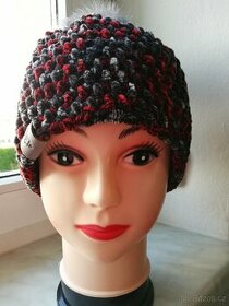 Ručně háčkovaná čepice s odepínací bambulí
