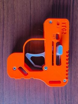 Pistole na TicTac silna pruzina = delsi dostrel zasazením krabičky nahoru jako zasobnik oranzova barva z 3D tiskarny