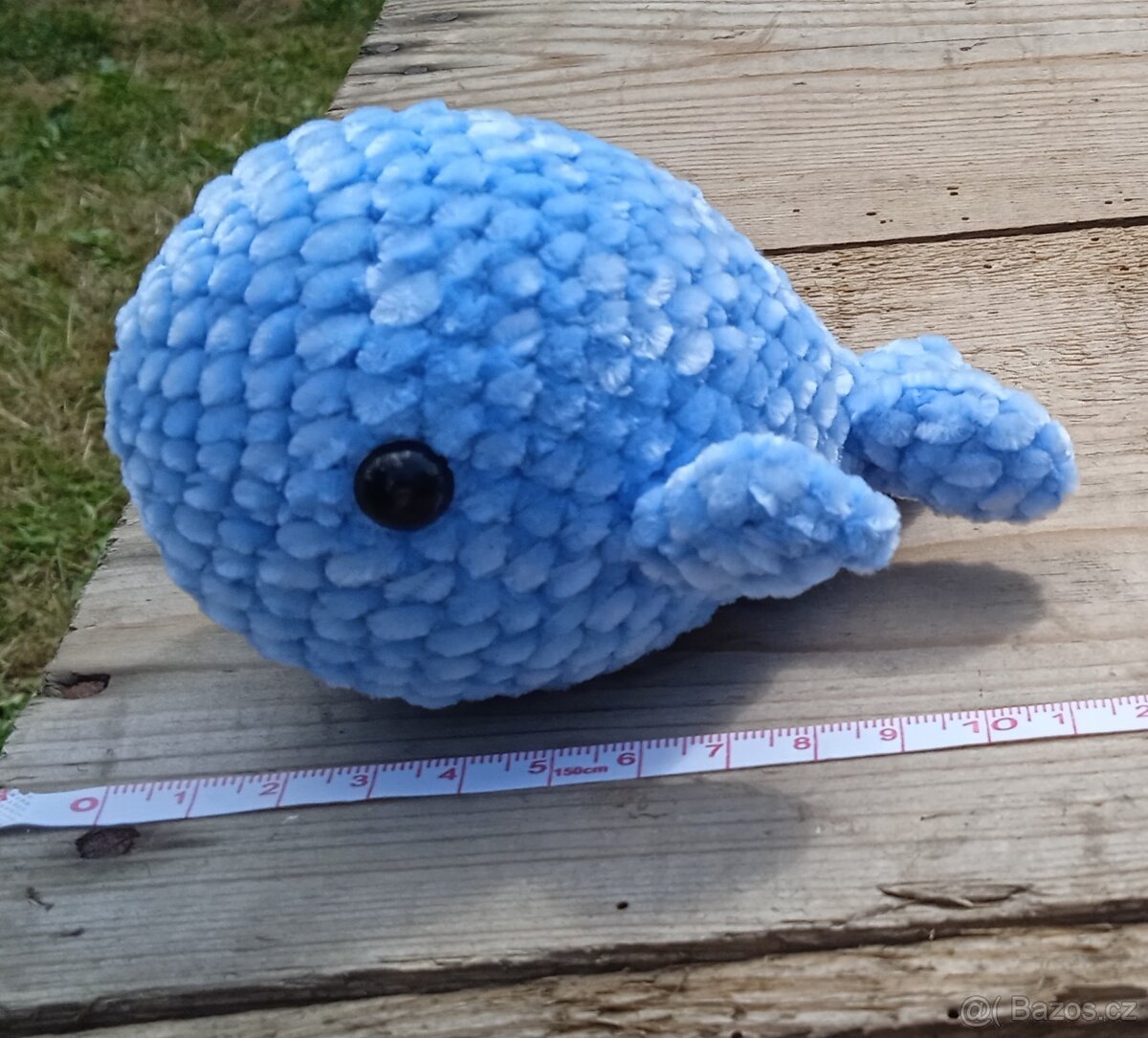 Nabízím háčkovanou velrybku Velikost: délka 12cm x výška 6 cm Popis: pletací žinylková příze Alice bezpečnostní oči černé výplň duté vlákno pratelné
