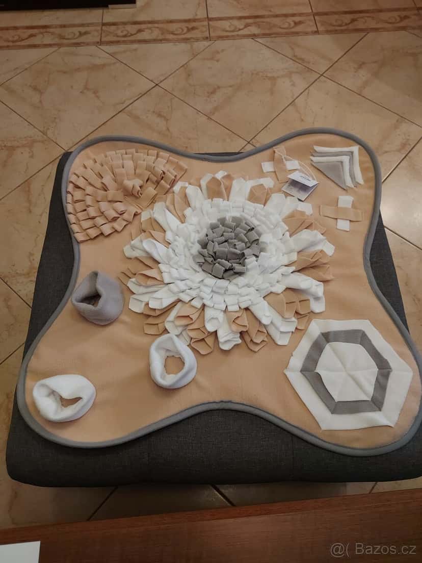 Prodám zcela novou čmuchací deku XL pro psy. Deka je velká, pevná, má mnoho kapes, tunýlků, třásní a úkrytů. Pes se skvěle zabaví, trénuje čich, soustředění i vyhledávání pamlsků. Není vůbec použitá – jen vyfocená. ✔ Velká velikost – vhodná i pro střední a velké psy ✔ Kvalitní zpracování – nečechrá se, drží tvar ✔ Snadné čištění ✔ Vhodné proti nudě, stresu i na zpomalení krmení