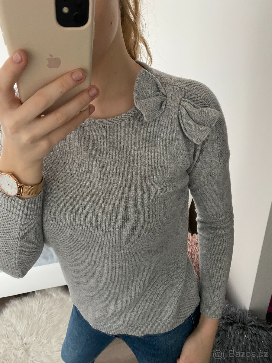Pulover s mašličkou, párkrát na sobě. Délka 55, šířka 52 cm. Doprava od 65 Kč