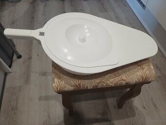 Prodám plastovou podložní mísu s víkem pro ležící pacienty. Nepoužitá. Původní cena 310 Kč. Pouze osobní odběr na Praze 3.