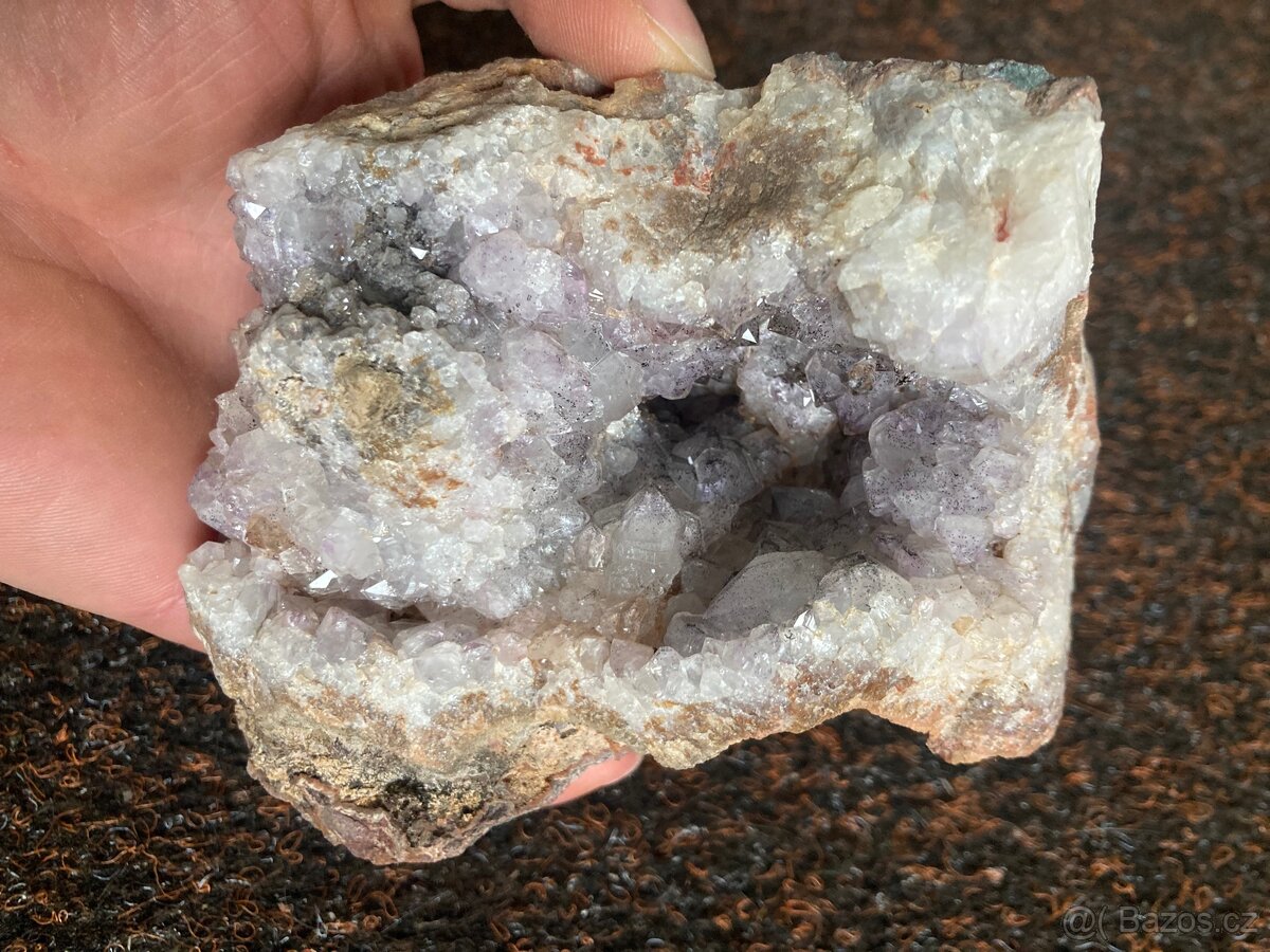 Nabízím ametystovou geodu z lomu Doubravice. Velikost vzorku je 7x9x11cm.
