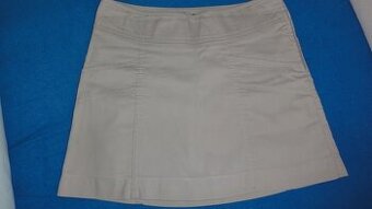 Prodám stále pěknou sukni H&M, vel. 38, má 2kapsy, spodničku, na boku zip a knoflík. Je velmi příjemná, ráda jsem ji nosila, bohužel je mi velká (trochu jsem shodila a plavu v ní), 100% bavlna. Dlouhá 40cm (měřeno na boku), v pase 2x40cm.
