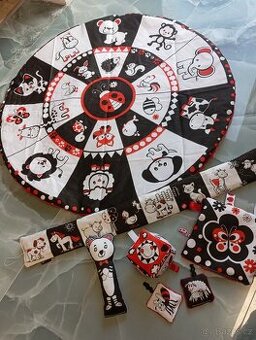 Kontrastní sada ihned k odeslání, super dárek pro mimčo pro Ježíška. Velká kruhová deka 85cm, leporelo 80cm, kostka hrkačka, chrastítko medvídek, šustici muchláček s dva mini polštářky které cinkaji.. cena za vše 1499,-