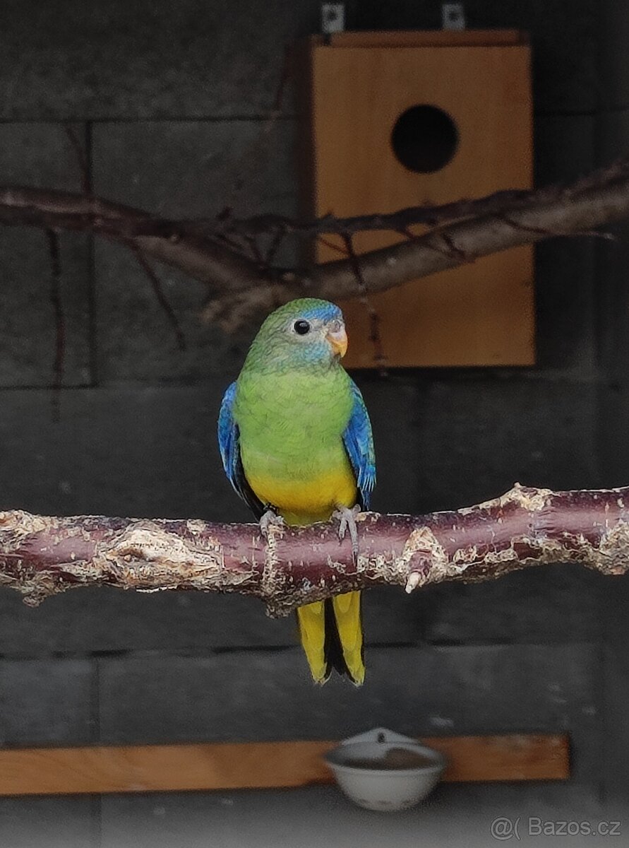 Prodám poslední loňskou samičku neofémy tyrkysové z venkovní voliéry (pevný kroužek).