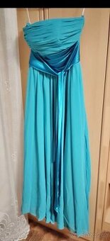 Nádherné šaty vhodné na ples, do tanečních na svatbu. Jednou použity, velikost vhodná S - L. Dají se vzadu utáhnout přes prsa. Krásnou siluetu dělají. Tyrkysová barva