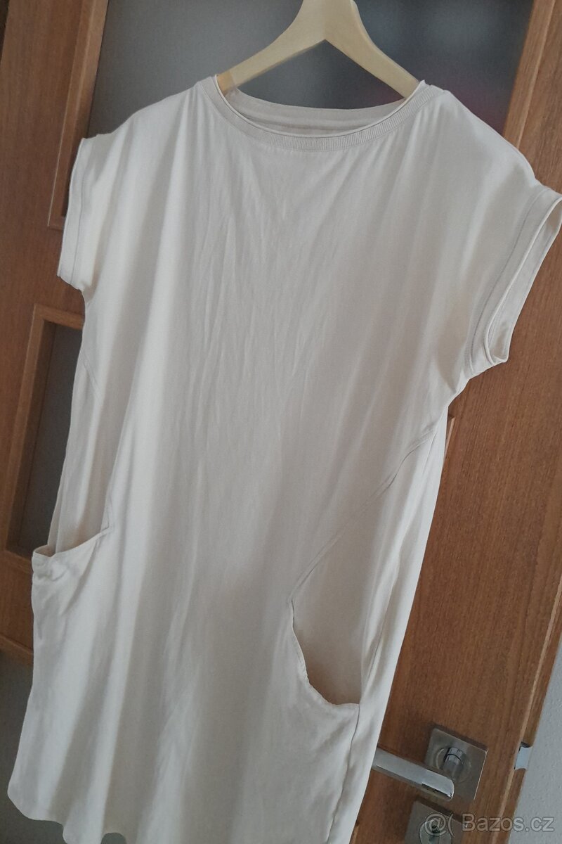 Nabízím bavlněné šaty s kapsami české značky Doke. Velikost L. Celková délka 90 cm, přes prsa 50 cm, boky 52 cm. Materiál 92% organická bavlna s certifikací OCS, 8% elastan. Párkrát nošené. Krásný stav.
