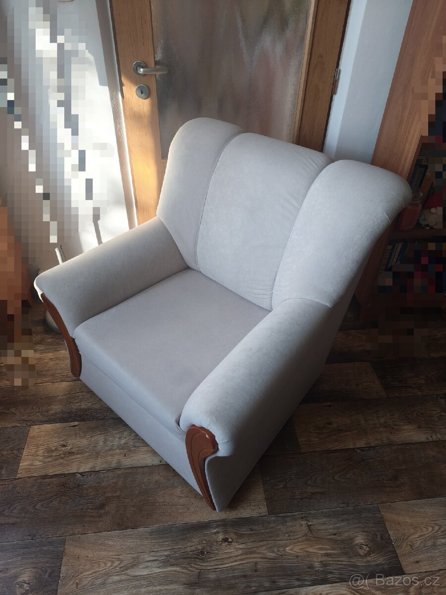Prodám použité křeslo, rozměry: šířka cca 95cm, hloubka cca 85cm, výška cca 90cm. Barva světle béžová. Dobrý stav viz foto, bude chtít vyčistit. Provozní oděrky. Osobní převzetí v Plzni Bolevci. Druhé patro. Vlastní odnos. I don't accept fake courier offer.