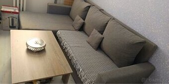Prodám pěknou rohovou sedací soupravu s úložným prostorem v neutrální šedé barvě včetně konferenčního stolku. Při zájmu zašlu číslo na majitele Dovoz možný. Sedačka bude před prodejem vyčištěna, vytepovaná.
