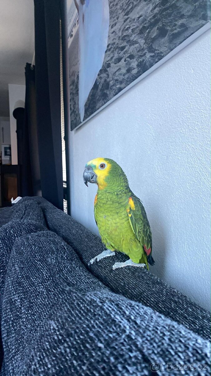 Prodám samečka Amazoňana modročelého. Narozen květen 2023. Ručně dokrmený. Prodáváme z důvodu velké vytíženosti. Po dohodě možná i koupě klece.