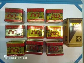 Starší zachovalé plechovky ve kterých byl prodáván čaj a kakao