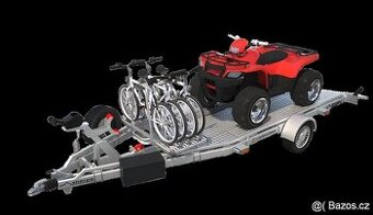 Cena: Dohodou. Prodám speciální přívěs vyrobený na zakázku. Možnost převozu na čtyřkolky, motorky, kola. Délka 5 - 6m. Nosnost 750 až 1500Kg. Pneumatiky 12 - 16"