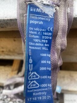 Prodám cca 200 ks použitých jeřábových úvazků - nekonečný popruh 5m. Min. odběr 10 ks
