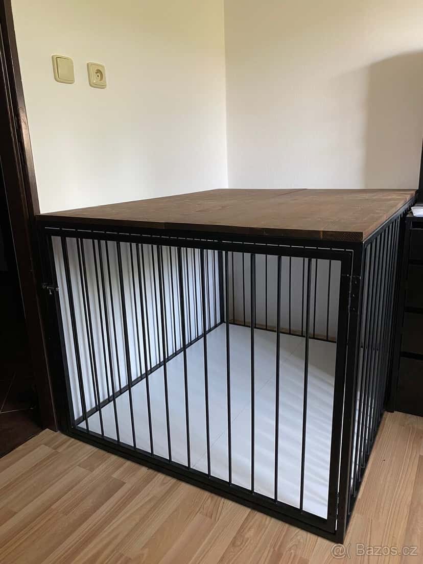 Prodám ručně vyráběnou psí klec o rozměrech 100x120cm a výška 80cm. Vyrobena z jeklů 20x20 a kulatiny 8mm. Natřena černou barvou. Spodní desky jsou laminované aby nenasákli a horní jsou natřené lazurou. Klec je nová, nepoužitá. Klec jsem vyráběl sám. Psí klec, klec, kotec