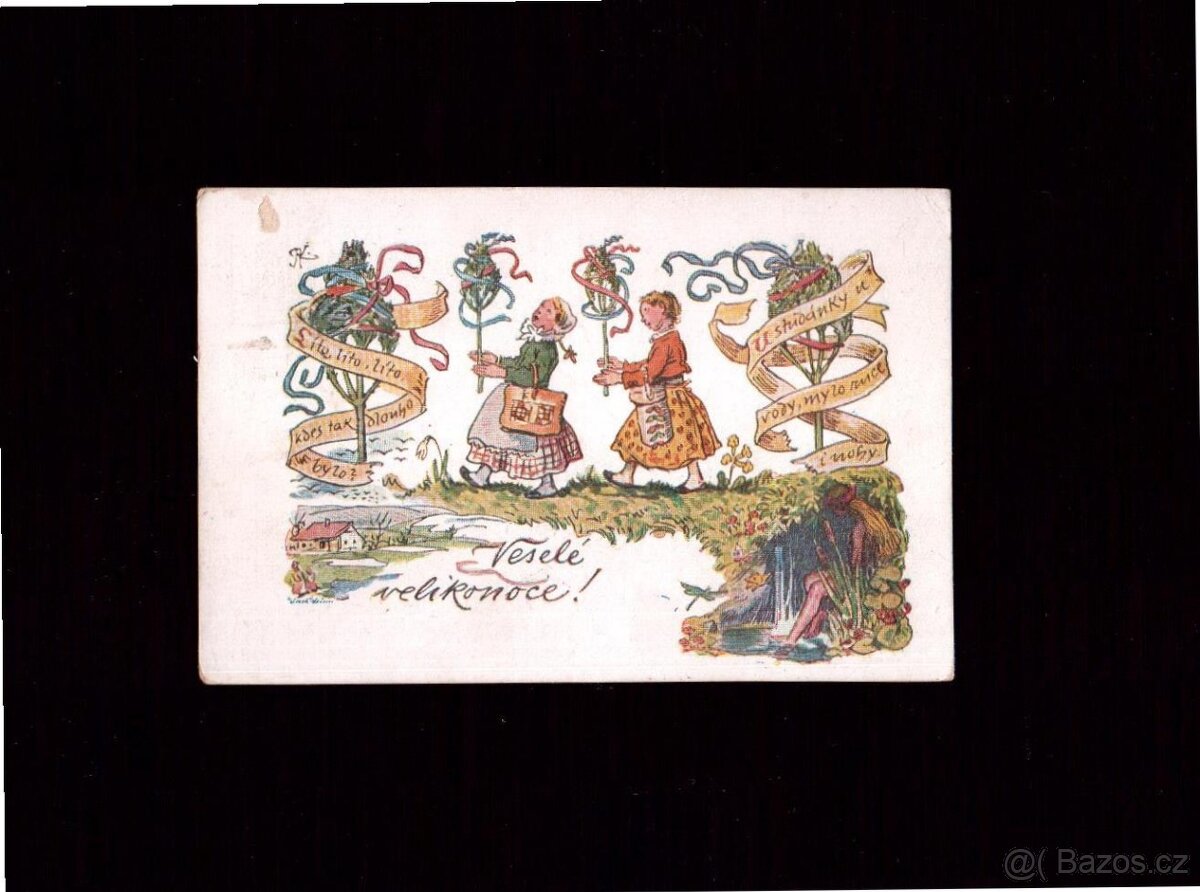 Prodám pohlednice VESELÉ VELIKONOCE. Maloval Adolf Kašpar, reprodukce i tisk Unie, prošlá poštou 1925.