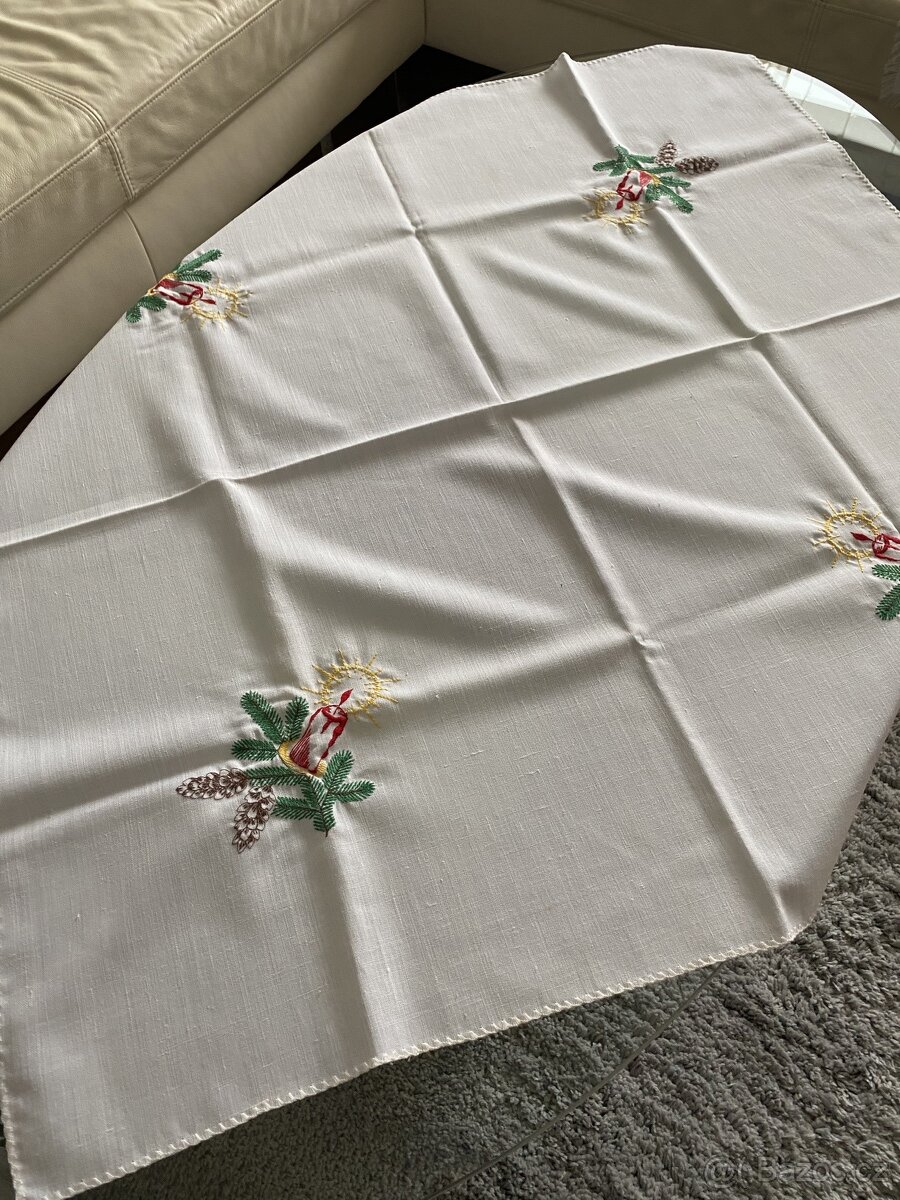 Vánoční ubrus, 90x90cm, super stav, jen nedostatek viz.foto, běžným okem není vidět.
