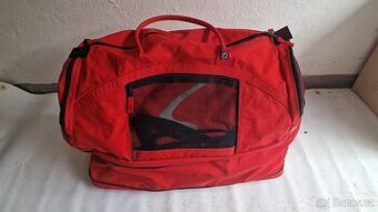 Cestovní sportovní taška. Rozměry 70x35x55 cm. Vhodná na převoz sportovního oblečení nebo vybavení - samostatné přepážky/kapsy na obuv. Spodní část na kolečkách. Objem tačky možno zmenšit pomocí zipu. Kvalitní pevný materiál. Nikdy nepoužito, nové. Předání v Jihlavě nebo Praze, nebo zaslání PPL (+poštovné)