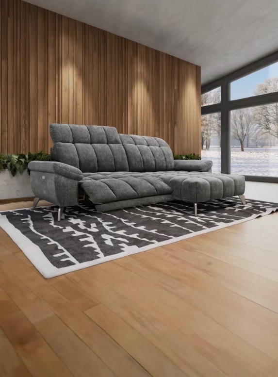 Sedaci souprava rohova s jedním motorem na relaxaci nohou viz foto pouze vybalená nova tmavě šedárameno: 266/105-178 cm