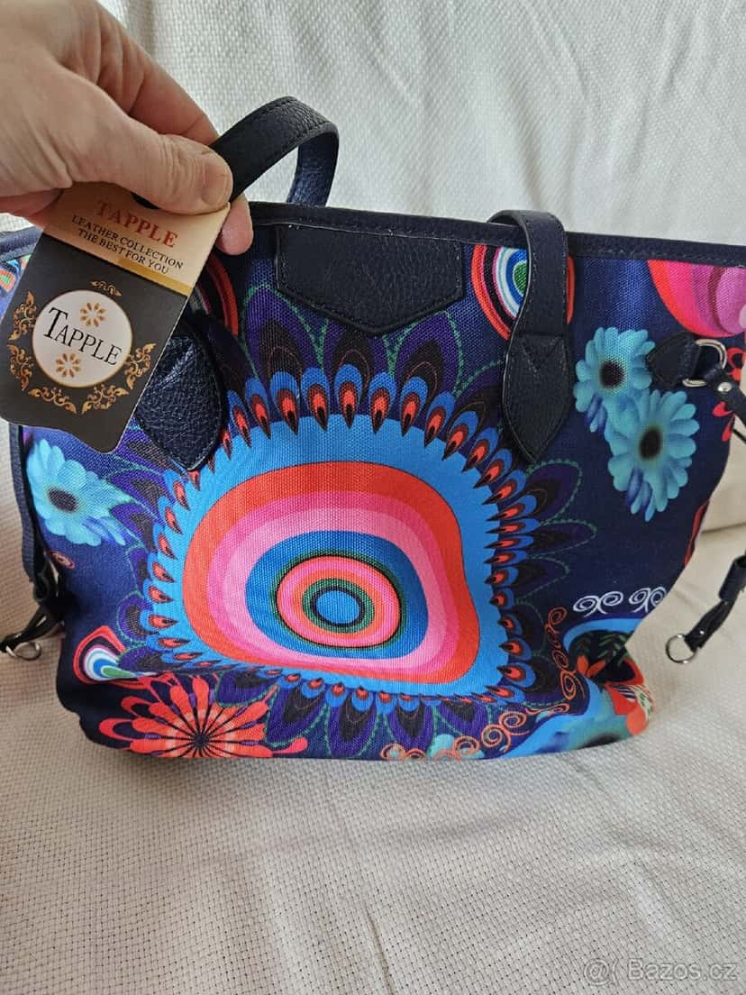 Nová, pěkný pestrý design. Uvnitř pěkná podšívka a spousta kapes.
