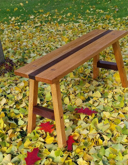 Nová dubová lavička kombinovaná z orechovým drevom. Na bežné používanie. V tomto vyhotovení je to jedinečný kus kvalitného nábytku. Výška: 48 cm, dĺžka 94 cm, šírka sedacej časti 30 cm, celkový pôdorys 96 X 35 cm. Povrchová úprava lakovaním. Celková cena.