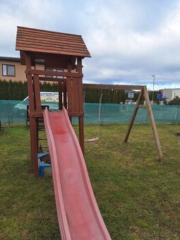 Prodám dětské hřiště, pískoviště, domeček se skluzavkou a houpačkou. Masiv. Atestace.