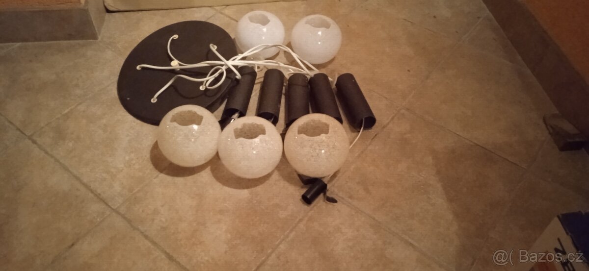 Prodám pětipramenný lustr s okrasnými světelnými koulemi - viz foto - vhodný do obývacího pokoje včetně nově zakoupených a nepoužitých okrasných koulí.