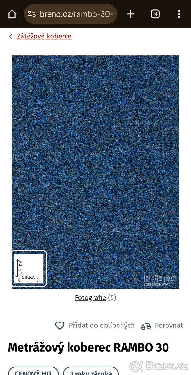 Prodám zátěžový koberec nepoužitý BRENO - RAMBO 30, rozměr 420x270 cm, viz popis na foto, k náhledu a převzetí Brno-Medlánky, neposílám/po dohodě možnost dopravy po Brně. Inzerát platný do smazání!