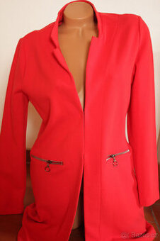 zapínání na 2 háčky, kapsy na zipy, mater. vroubkový, barva červená, nový s visačkou prsa 2x 50cm délka 84cm pošt75kč